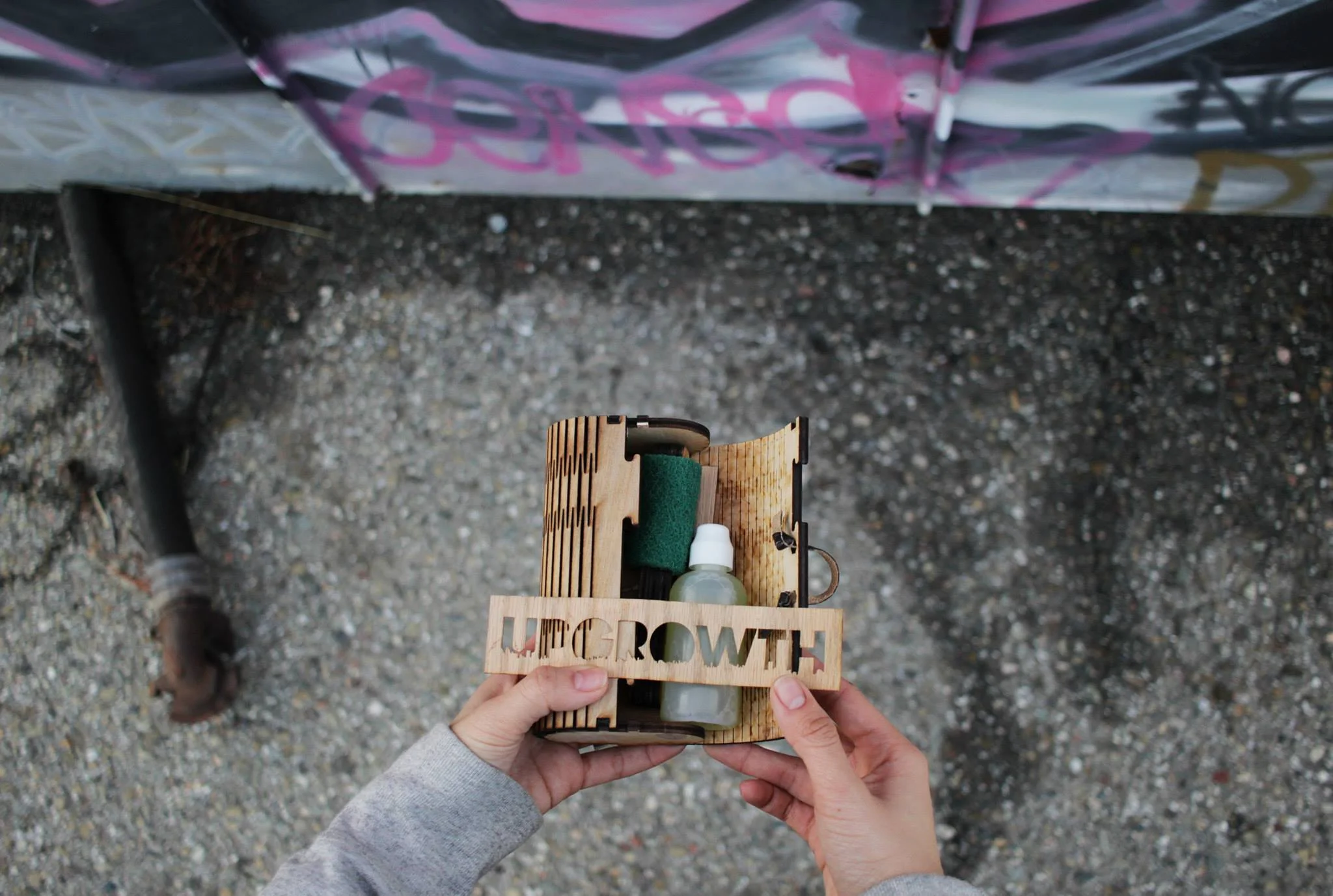 This design for the urban family is an activity that everyone can participate in. It is created with environmentally friendly materials and even cleans the environment around them by using reverse graffiti.